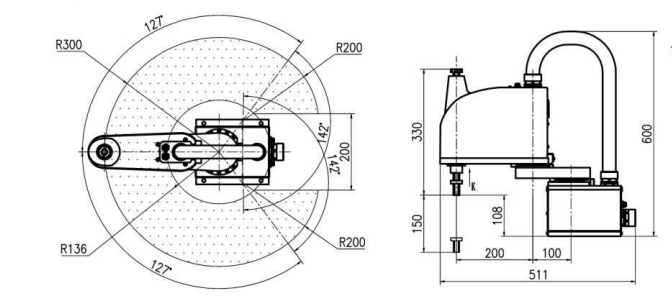 Траектории перемещения 6-ти осевого манипулятора и габариты для модели SD500