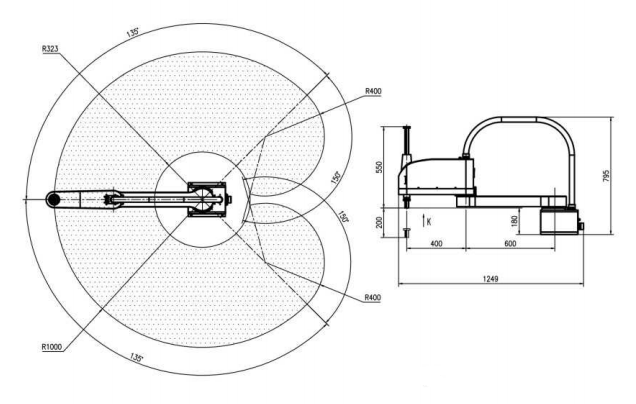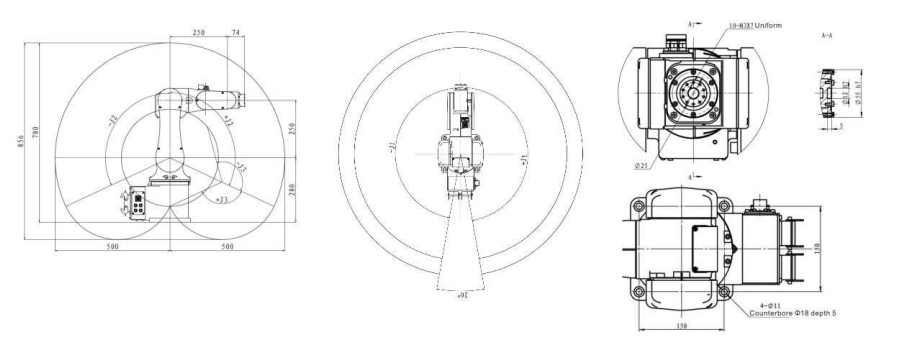 Траектории перемещения 4-х осевого манипулятора и габариты для модели AR 10130